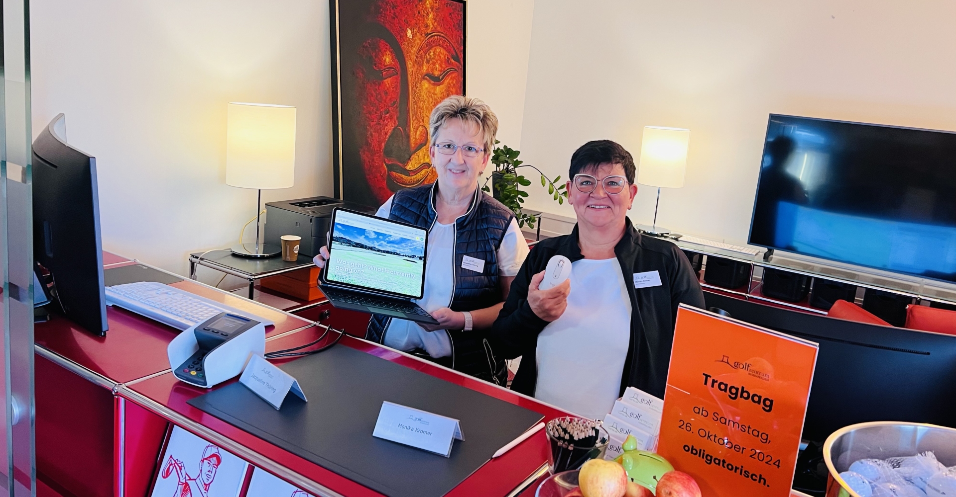 Wir begrüssen Monika Kromer am Desk im Clubhaus. Jacqueline Thüring und Monika Kromer sind die beiden Co-Leads am Desk.